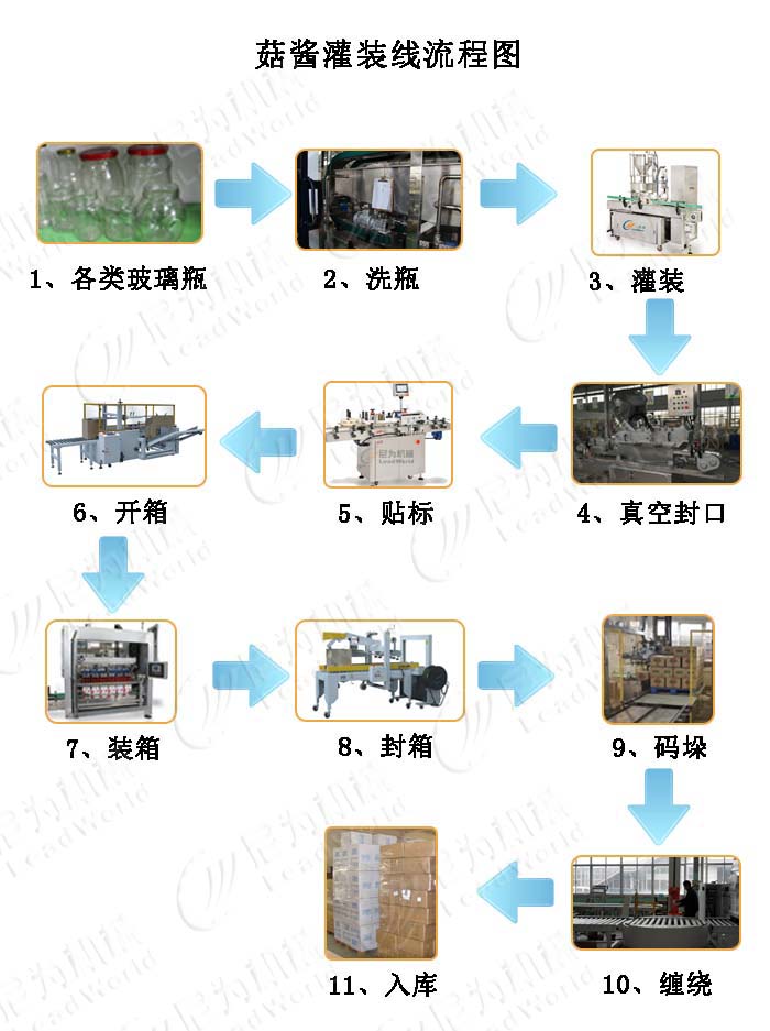 尼為機(jī)械為您提供整套菇醬灌裝線設(shè)備,包括灌裝、旋蓋、貼標(biāo)、殺菌、后道裝箱碼垛等。