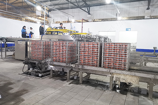 那么大量的罐頭產(chǎn)品如何送進殺菌釜內(nèi)呢?這就不得不提到自動裝卸籠機了。