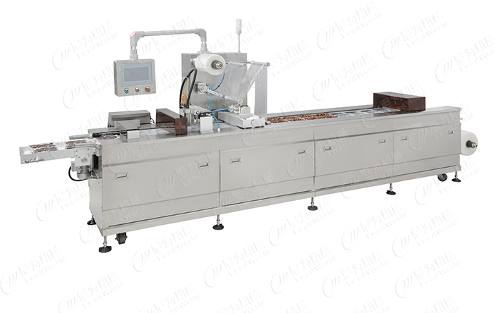 休閑食品真空包裝機是利用可拉伸和熱塑的薄膜或片材作為原料來制造容器,在裝填物料后再以薄膜或片材覆蓋進行抽真空和氣調(diào)密封的包裝設(shè)備。